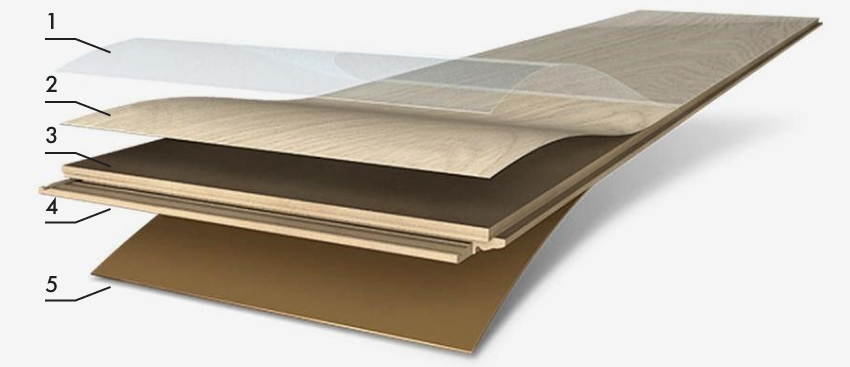 Ламинат представляет собой древесноволокнистую плиту высокой плотности, которая имеет декоративное покрытие и верхний защитный слой, предотвращающий его истирание, а также повреждение плиты. Выполнены плиты в виде отдельных досок, толщина, длина и ширина которых может несколько отличаться в зависимости от производителя.